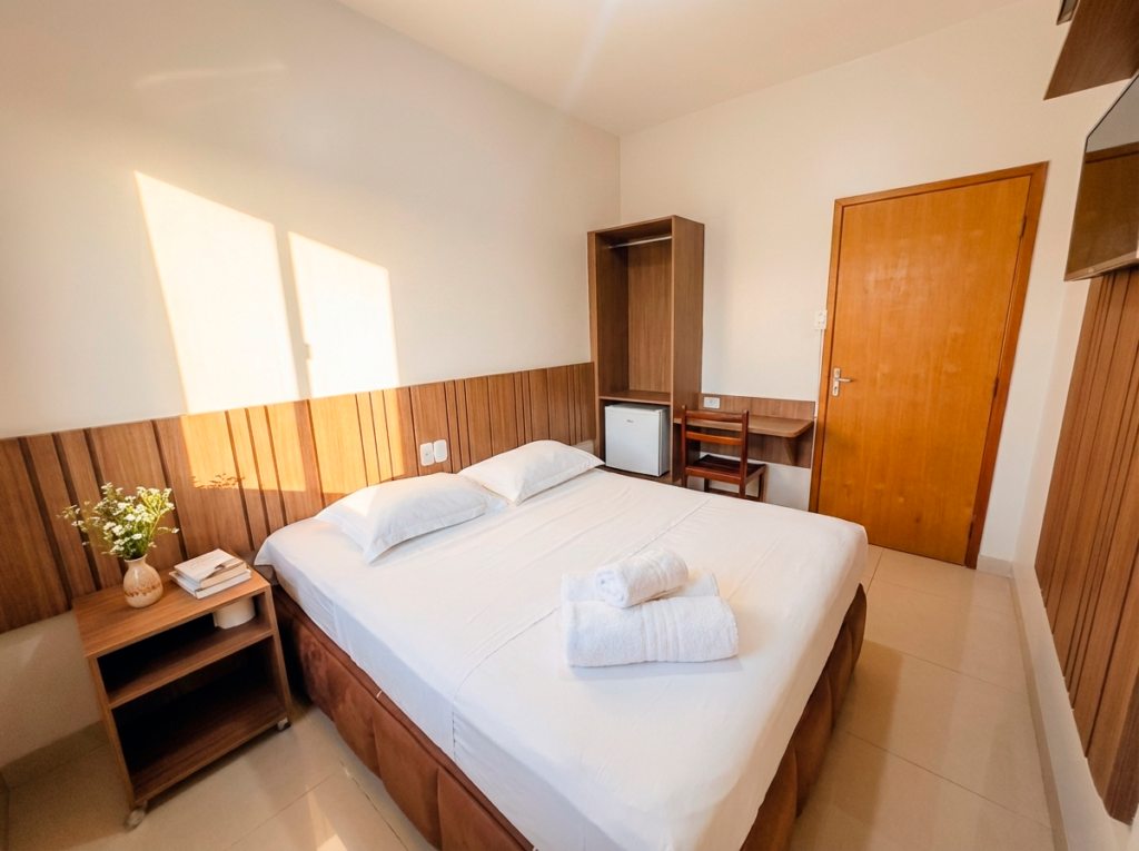 O Quarto Duplo traz um espaço mais amplos. Proporciona uma experiência mais relaxante para quem deseja bem-estar e praticidade. A escolha ideal para descansar com tranquilidade.
