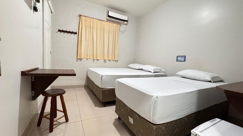 O Quarto Duplo traz um espaço mais amplos. Proporciona uma experiência mais relaxante para quem deseja bem-estar e praticidade. A escolha ideal para descansar com tranquilidade.